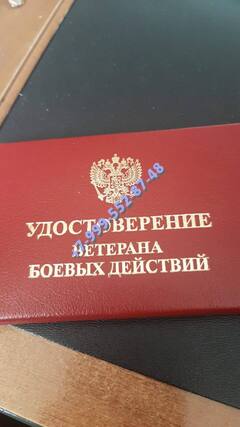 Удостоверение ветерана боевых действий 25000 руб + пересылка